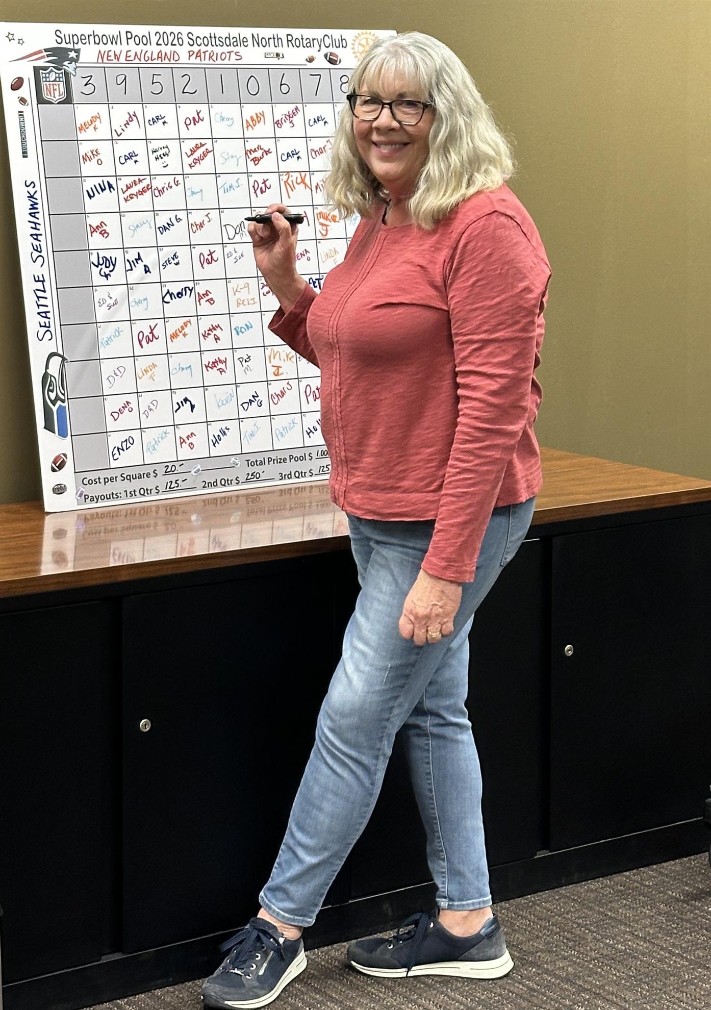 After Nick’s presentation, we drew numbers to go on our board for our Club’s Super Bowl pool drawing. Good luck to all who participated! A portion of the money collected will go into our Club’s Foundation.